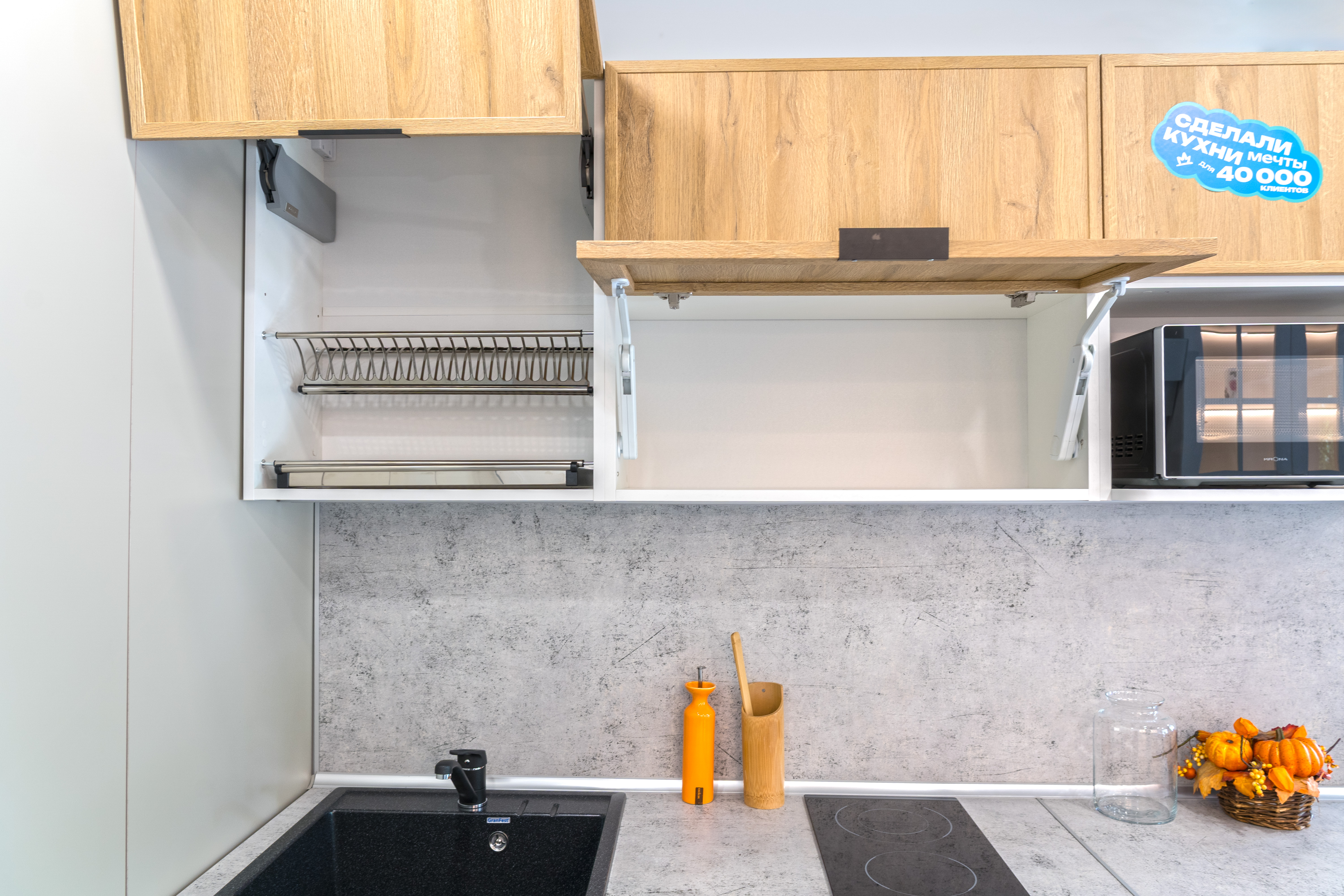 Благодаря типовым размерам и оптимизации производства кухня получается до 40% дешевле, чем изготовленная на заказ.
